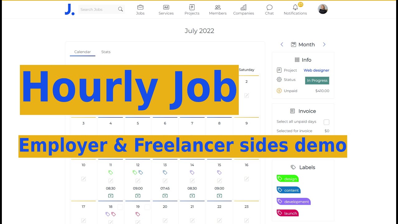 Freelance job board and the main page